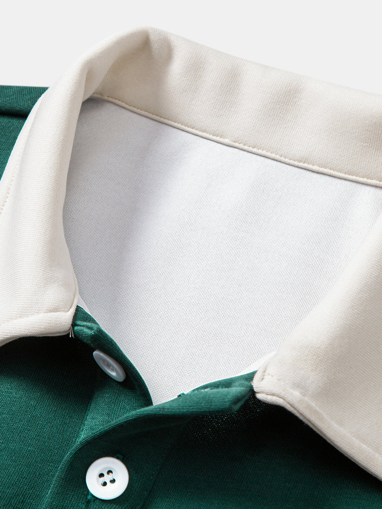 Relax Fit Los Angeles Print Color Block Polo Collar Sweatshirt