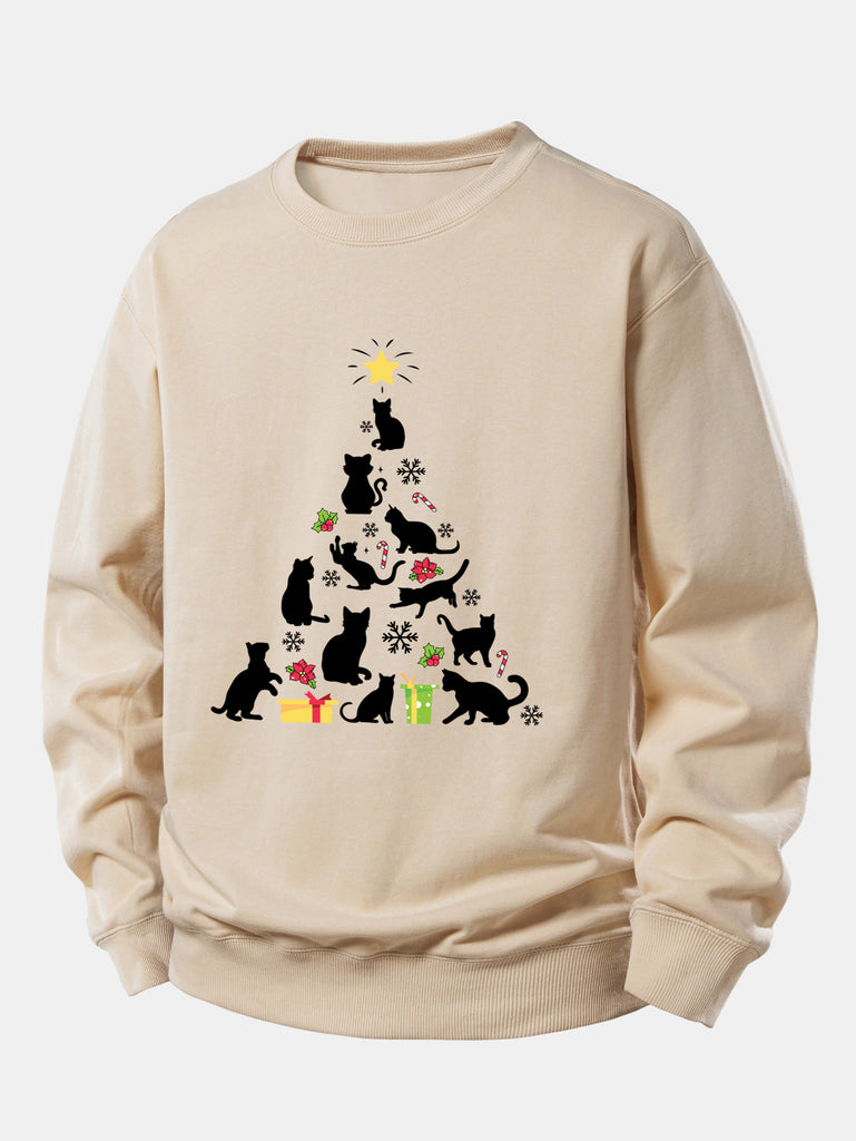 Christmas Naughty Cat Print Relax Fit Sweatshirt