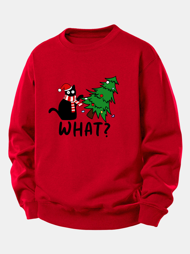Christmas Naughty Cat Print Relax Fit Sweatshirt