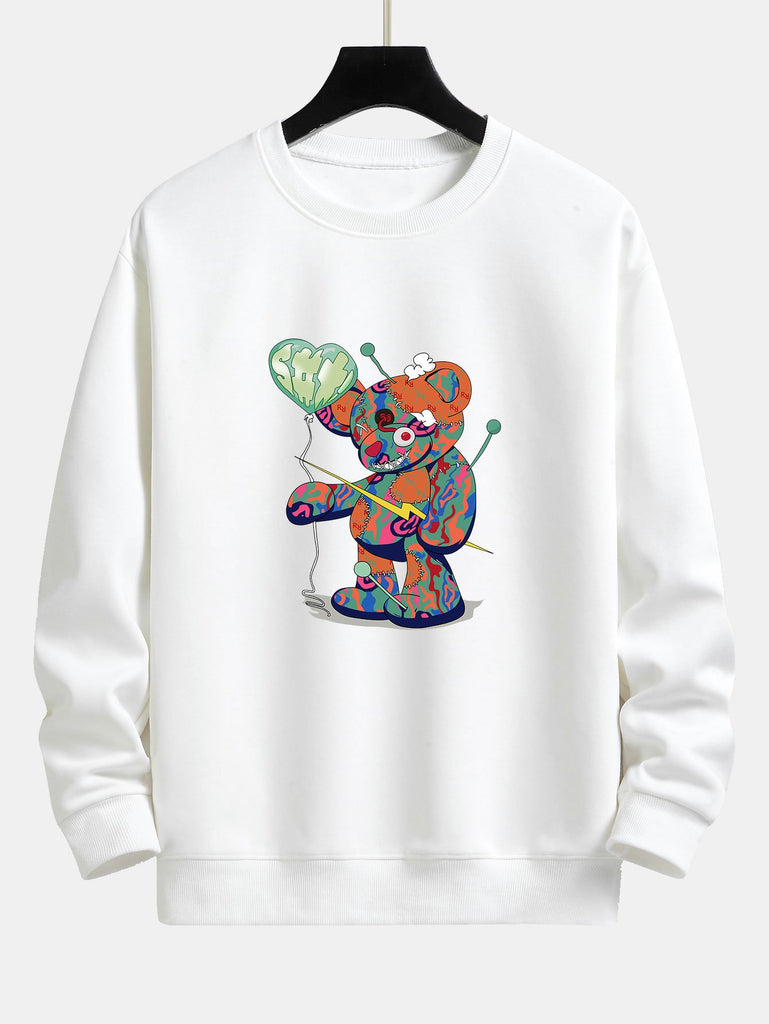 Sudadera de ajuste relajado con oso desgastado y colorido