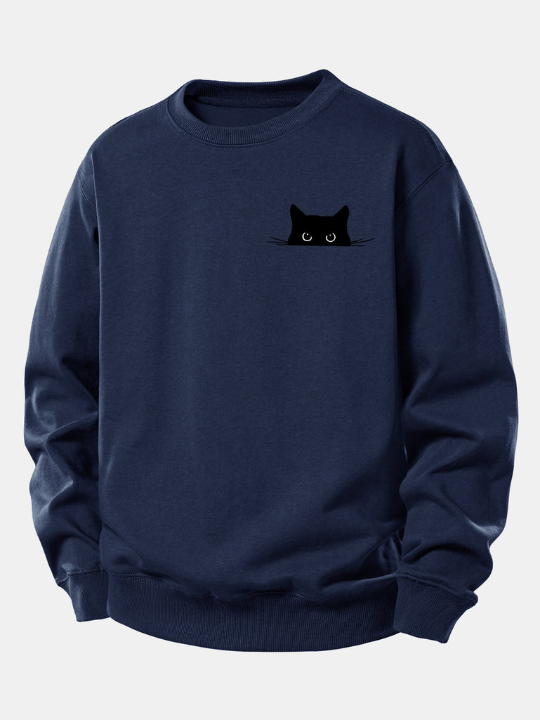 Black Cat Print Relax Fit Sweatshirt
