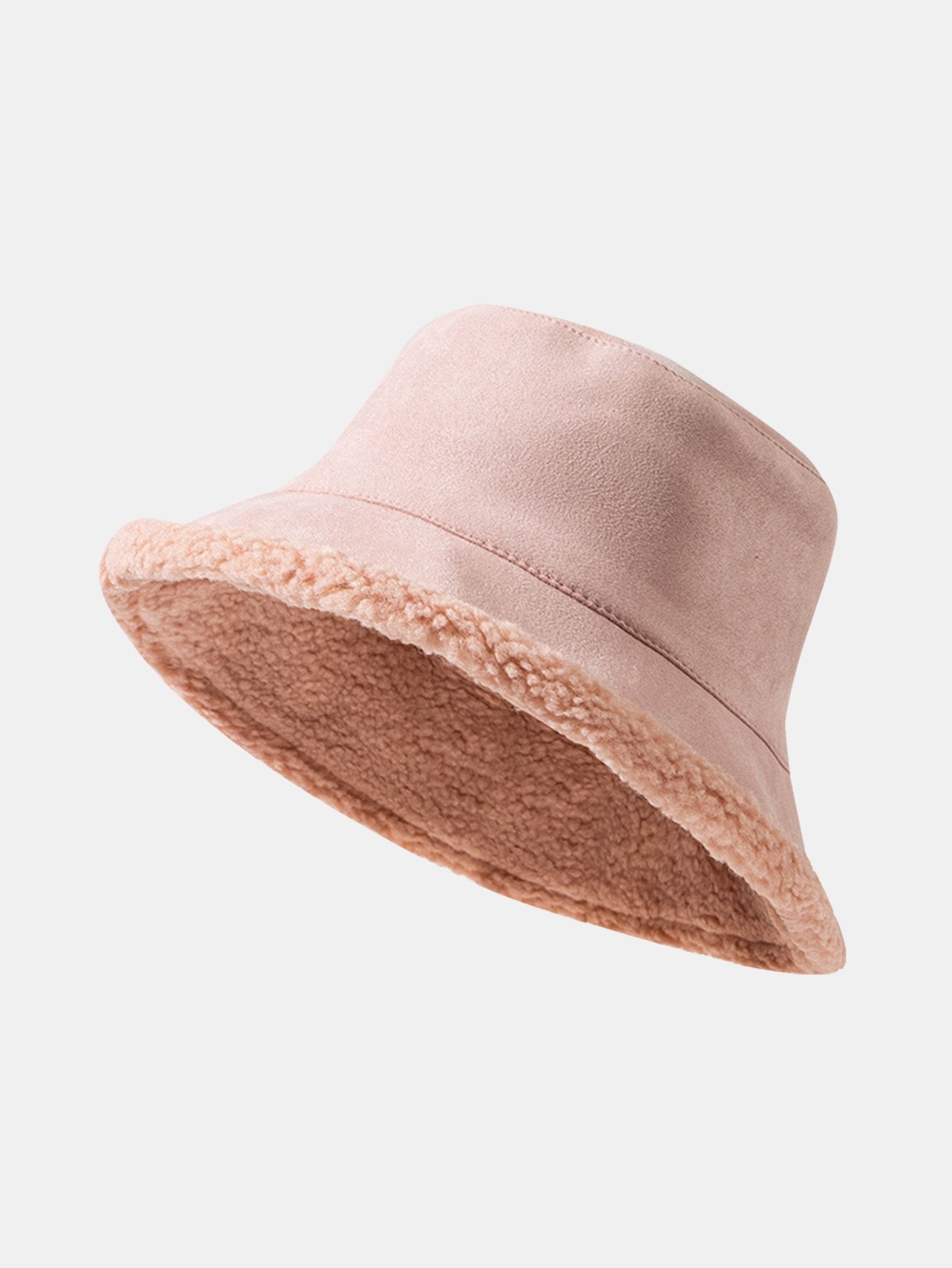 Cappello a secchiello in pelliccia scamosciata sintetica reversibile a doppio lato