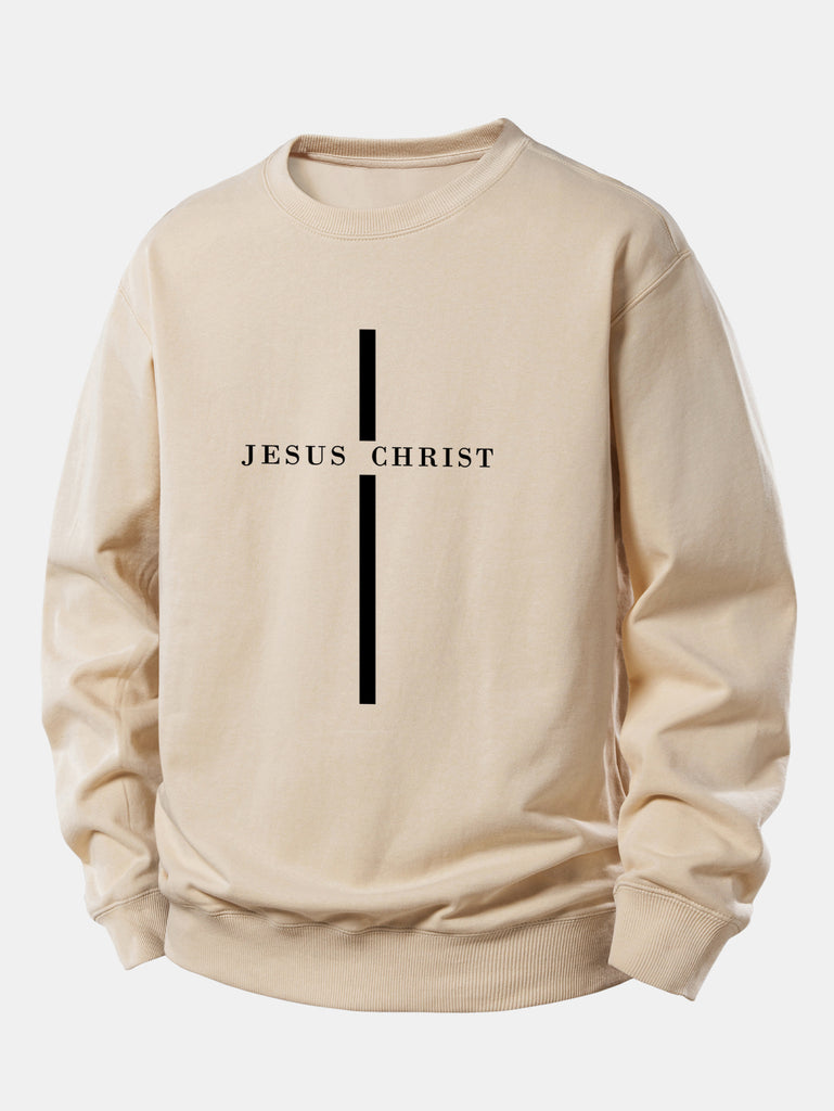 Felpa a righe con stampa di Gesù Cristo a vestibilità comoda